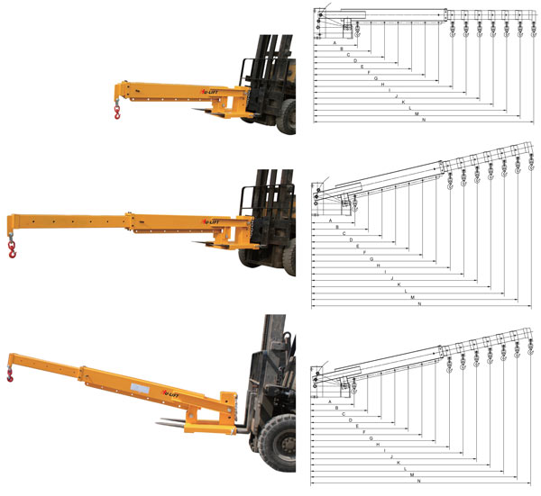 ● 吊臂有三千角度可調,適合不同工作環境要求 ● 帶有二個鎖緊螺柱,以及安全鏈條,確保貨叉吊不滑落 ● 可伸縮超長吊臂,適用于叉車吊運不同區域的產品 ● 使用過程中必須考慮叉車的載荷衰減曲線圖