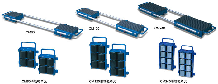 ● 每個CM系列滑動輪由兩個滑動輪單元及聯(lián)接桿組成 ● 載重能力大,適用于重型貨物的移動 ● 兩個滑動輪單元之間的間距可調(diào)節(jié)