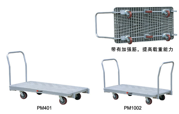 ● 塑料大臺面設計.底部帶有加強筋,載重能力強 ● 400Kg和1000Kg推車帶有兩個直輪,兩個萬向輪 ● 1500Kg推車帶有兩個直輪.四千萬向輪 ● 適用于倉庫、郵政,辦公樓等場所